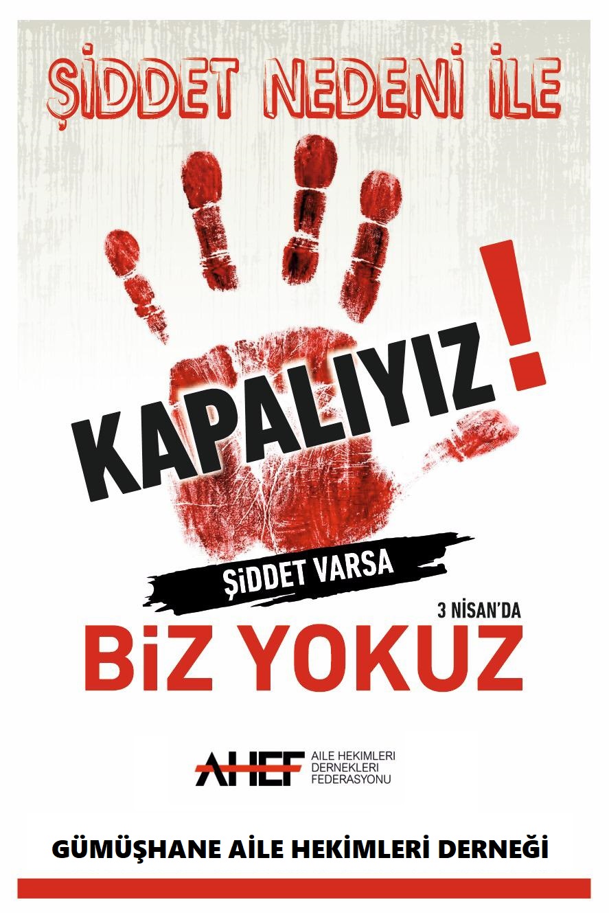 İzmir ilinde yaşanan 29.03.2019 Tarihinde yaşanan, 11 Kişinin Aile Sağlığı Merkezine gelerek Aile Sağlığı Merkezinde adeta terör estirmesi , Aile Hekimi ve görevli personellerin fiziksel şiddet görerek yaralanması nedeniyle Aile Hekimleri 3 Nisan 2019 Çarşamba günü görev bırakmaya karar vermiştir.